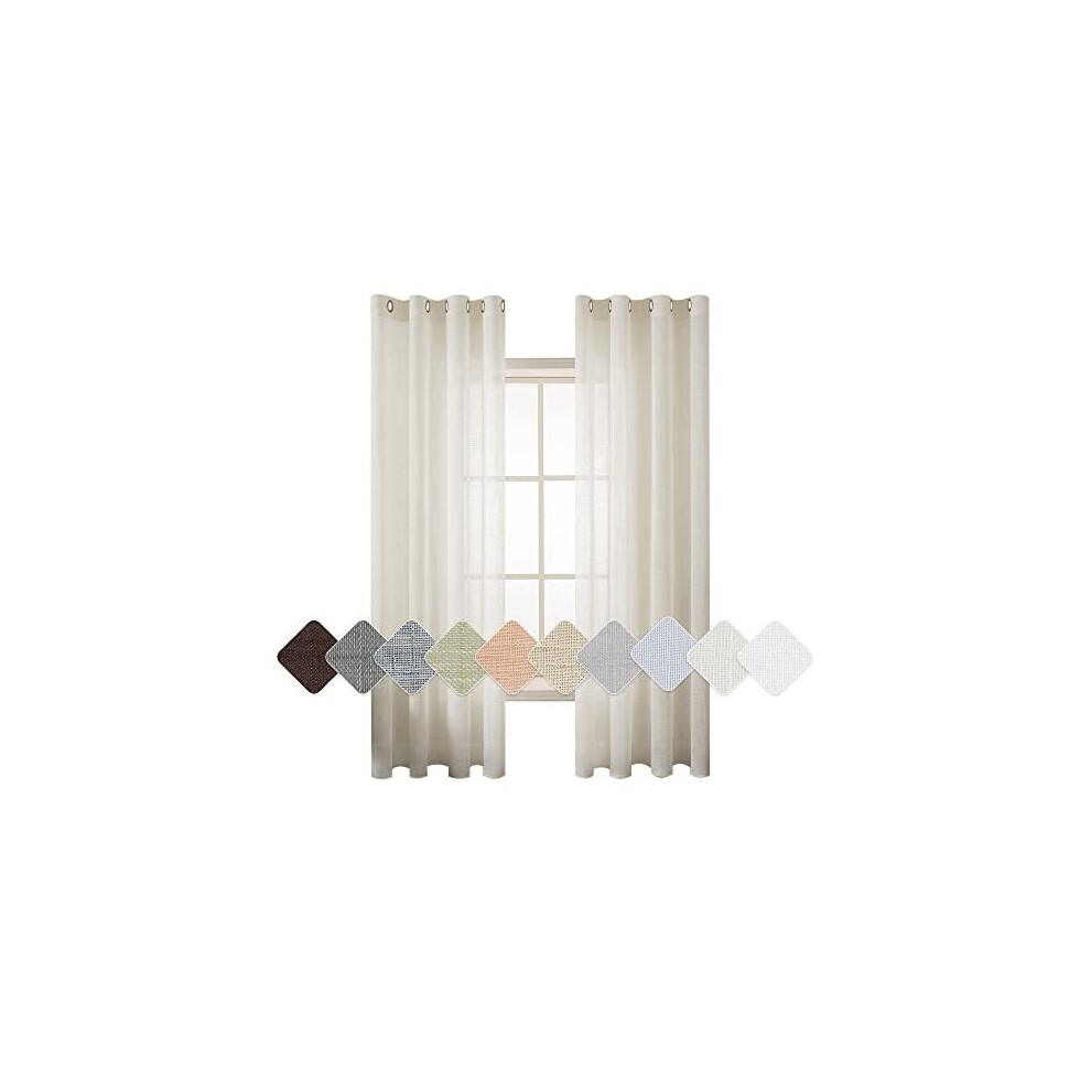 CUCRAF Sheer Curtains 55 x 84 Inch - Eyelet Curtains for Living Room & Bedroom, Voile Net Curtains with Linen Look, Wrinkle Resistant Easy Care Machine Washable, 2 Panels