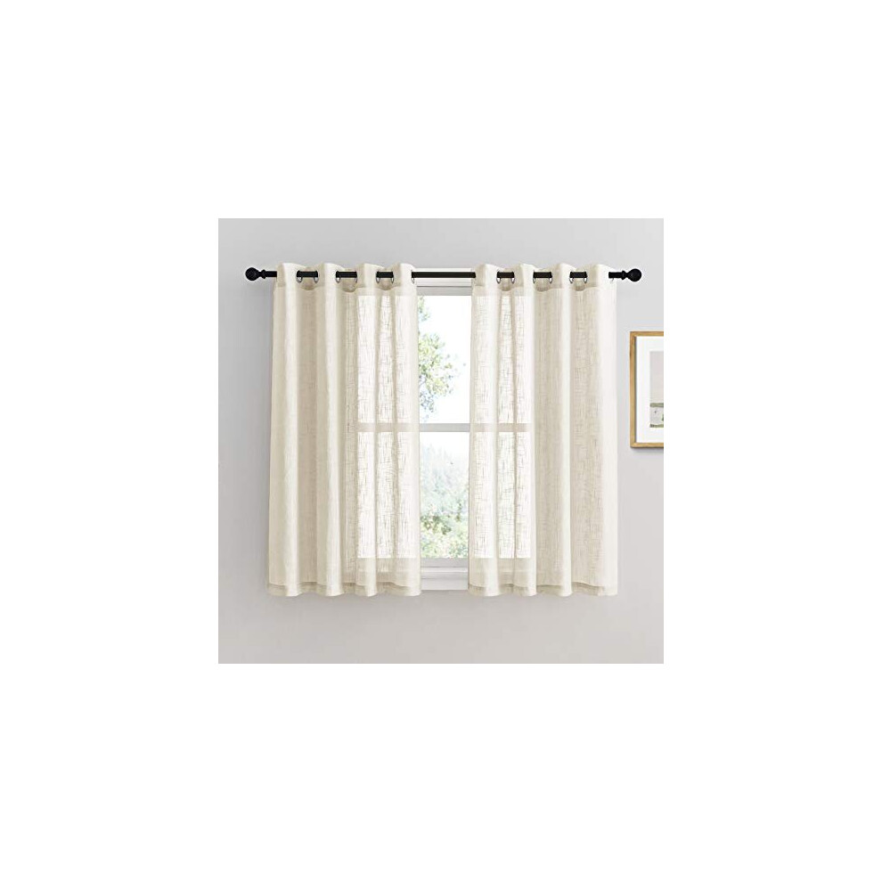 Ystyle Linen Look Curtains 2 Panels, 28 x 95 Inch, Short Cross Weave Voile Curtains for Living Room Kitchen Bedroom, Lightweight Modern Window Curtains with Rod Pocket, Beige