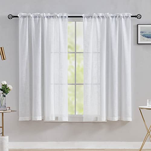 Home Brilliant White Linen Look Curtains Window Voile Panels Sheer Curtains for Bedroom Kitchen Closet Tier Curtains Rod Pocket, Set of 2, 54 Inch x 45 Inch