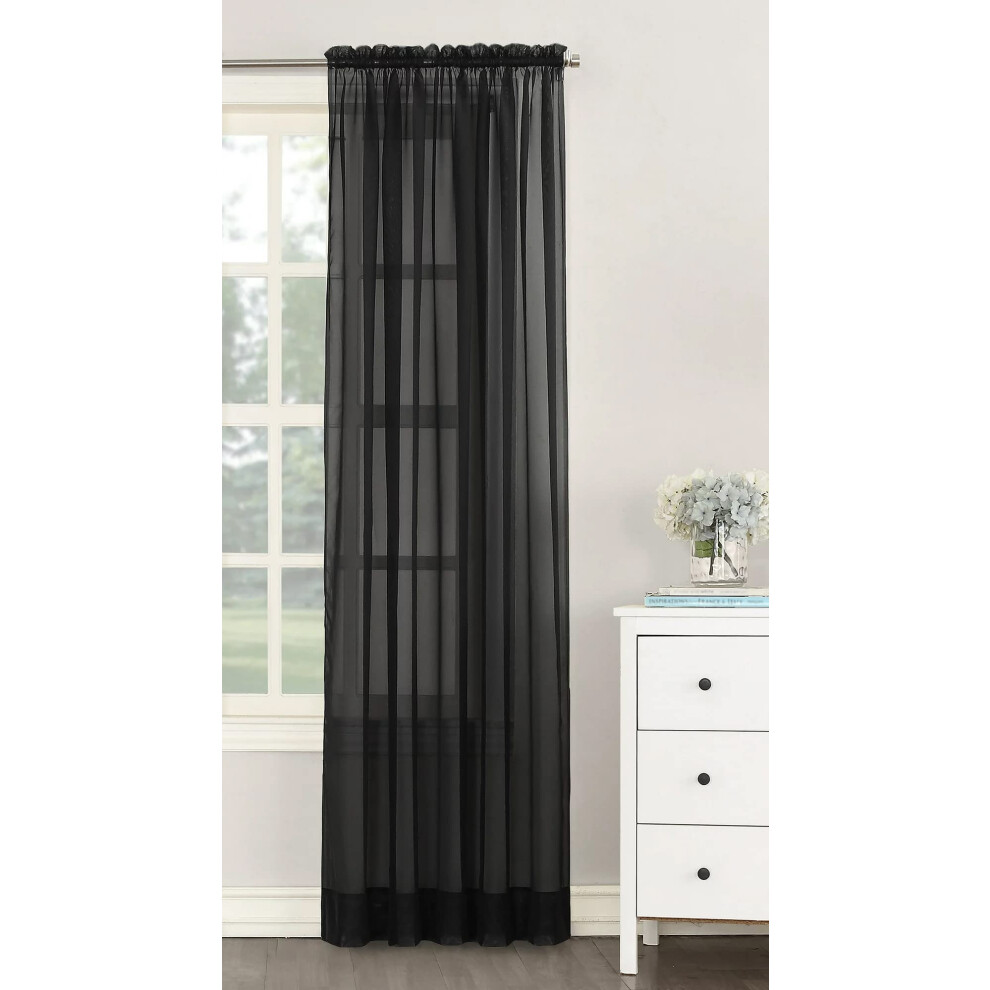NetCurtainsUK Single Plain Voile Net Curtain Sheer Panels Slot Top Heading (Black, 140cm (55'') Wide x 122cm (48'') Drop), HMPVP01