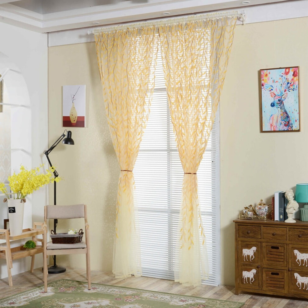 2 piece set voile tulle willow leaf see-through curtains voile panel curtains living room bedroom balcony (210*95cm) - yellow