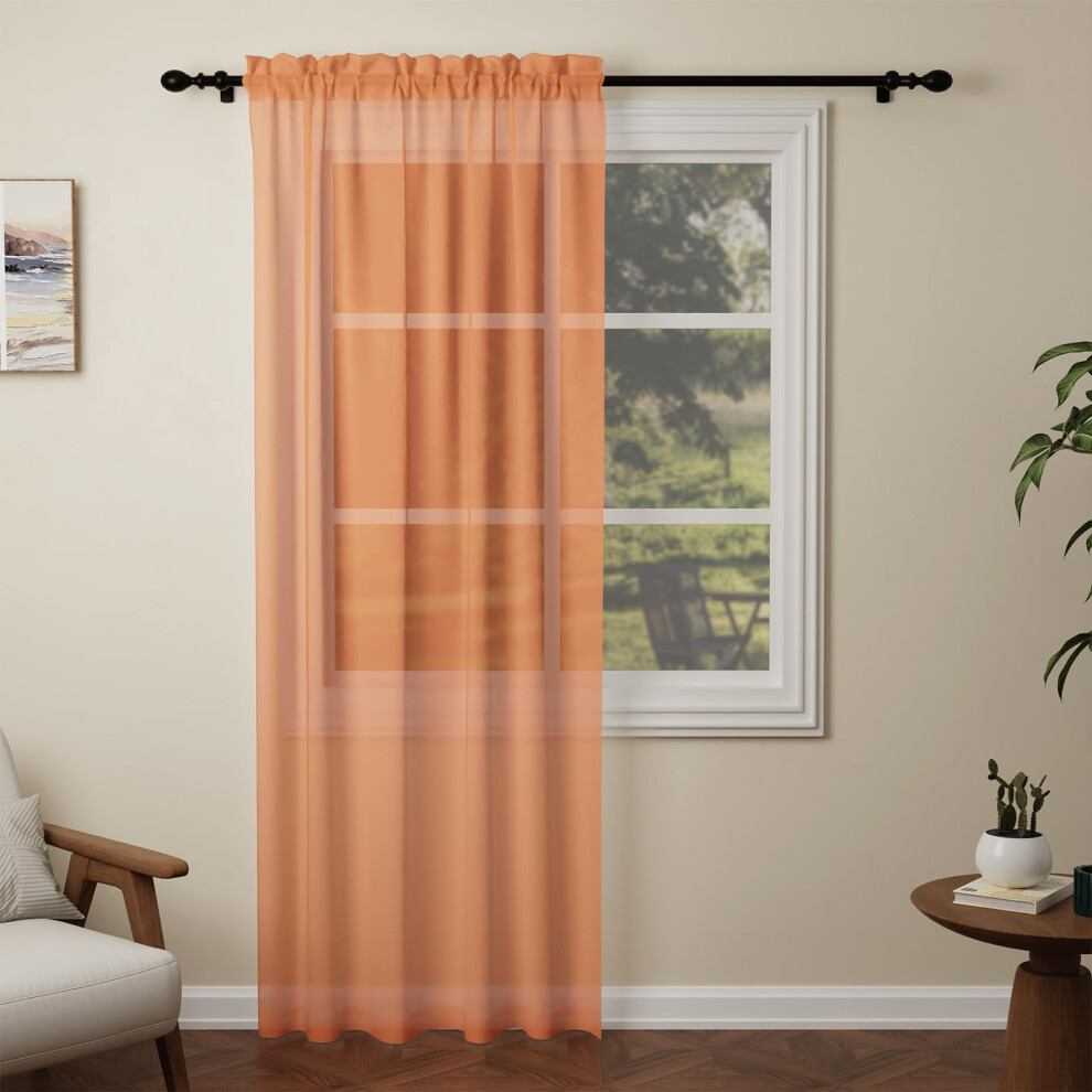 Pacok Orange Voile Curtains 90 Drop Net Curtain for Windows Rod Pocket Sheer Curtain Panel Voile Curtains for Living Room Kitcken Bedroom W56xL90