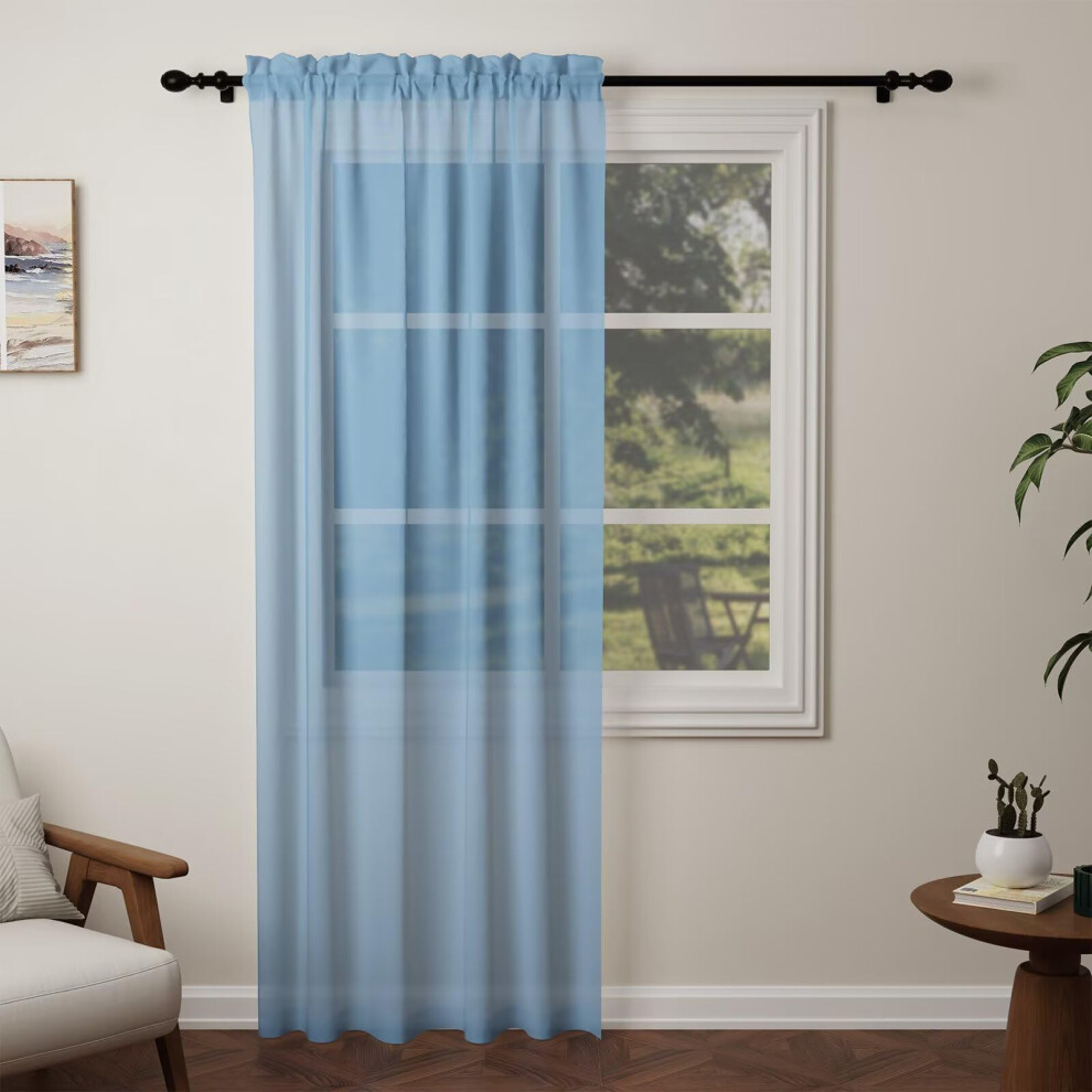 (Blue) Voile Sheer Room Curtains Sheer Voile Panel Curtains 40 X 106 In