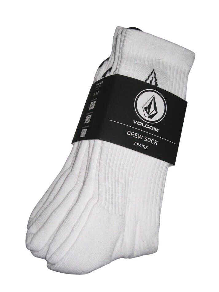 BNWT VOLCOM Full Stone Mens Sports Ribbed Crew Socks White 8 - 11 3 Pairs