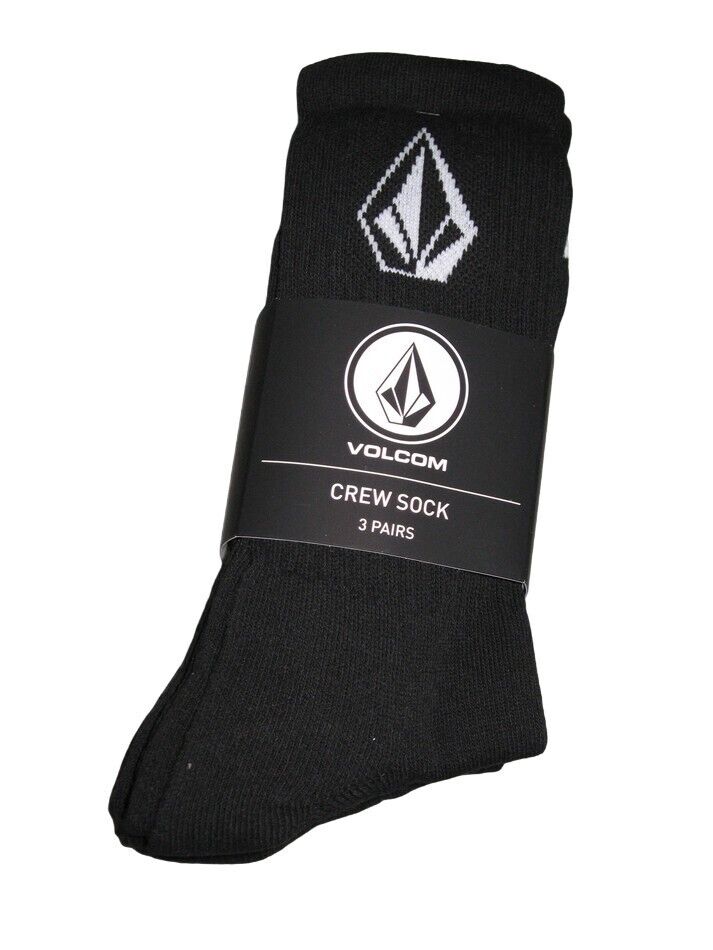 BNWT VOLCOM Full Stone Mens Sports Ribbed Crew Socks Black 8 - 11 3 Pairs