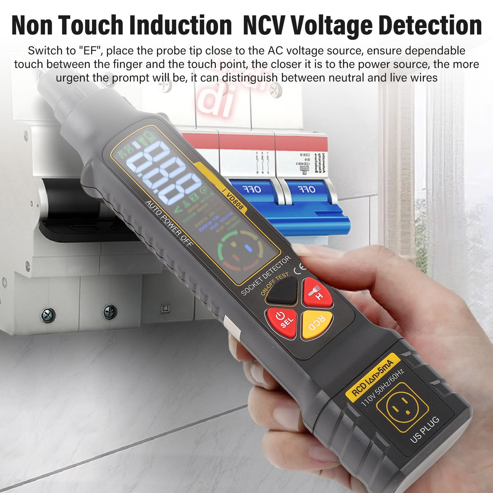 Proster Voltage Tester - Socket Tester Electrical AC Non-Contact Voltage Detector Pen and Plug Socket with Sound and Light Alarm Plug Tester RCD Outlet Socket Kit with LED Flashlight