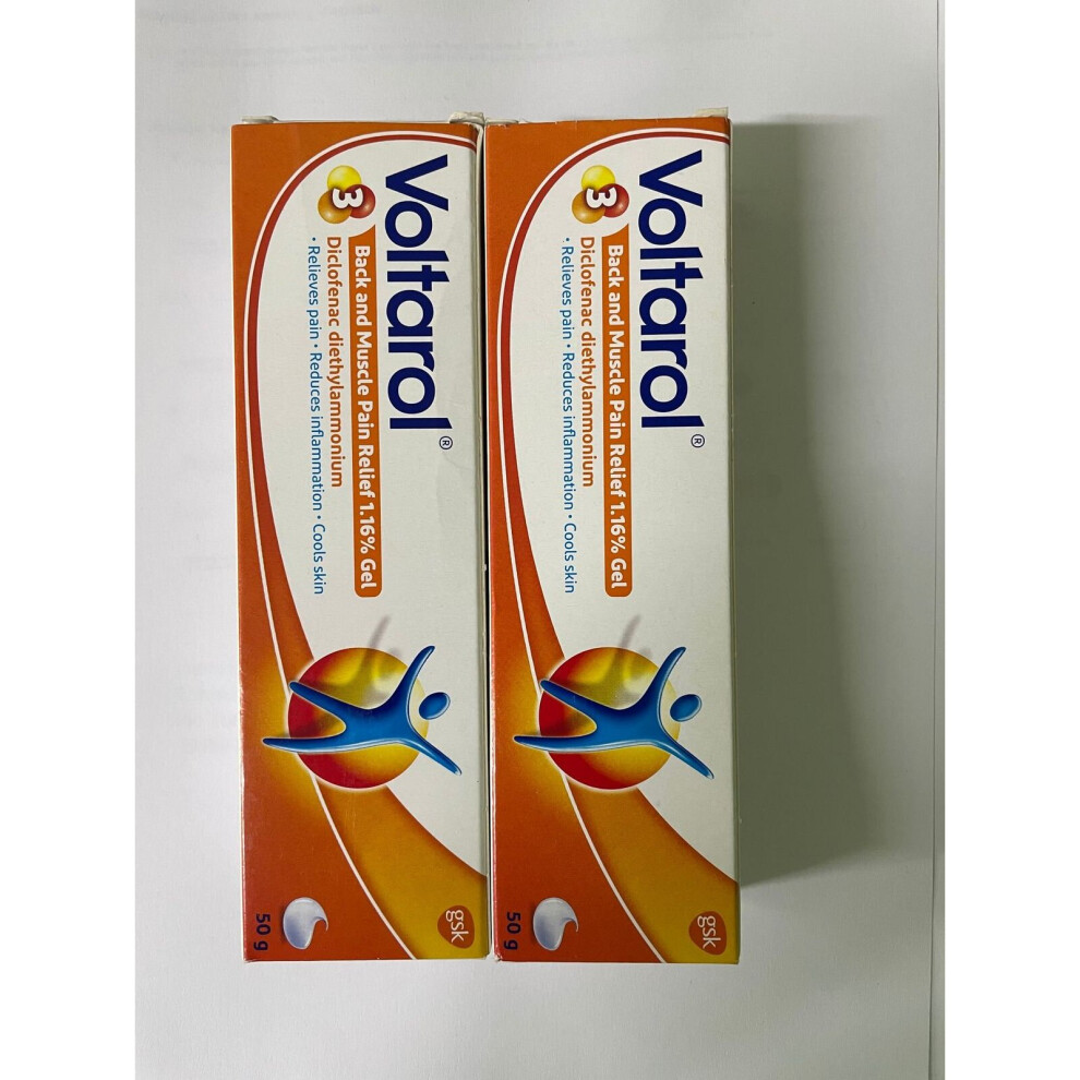 2 X VOLTAROL BACK & MUSCLE PAIN RELIEF 1.16% GEL 50G EACH
