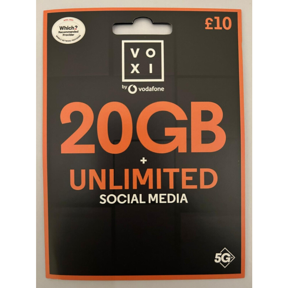 VOXI SIM Card 20GB Data Unlimited Social Media 1st Month Free UK