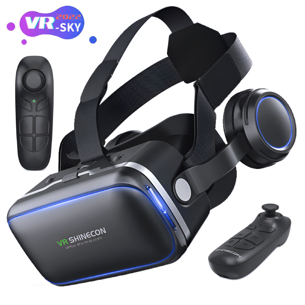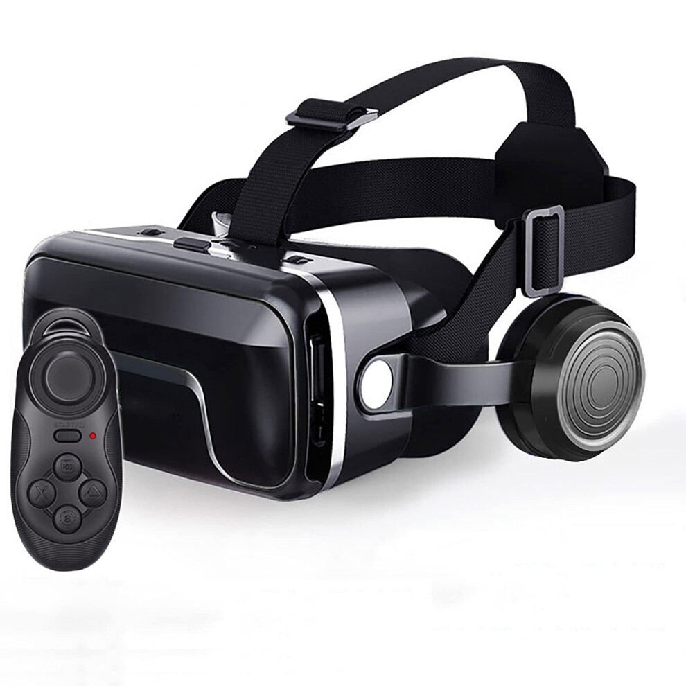 3D VR Glasses Virtual Reality Headset Bass Stereo Surround Headphone Games Movie VR Headset Wide Angle for 4.5-6.7 Inches Smartphones Remote Gamepad