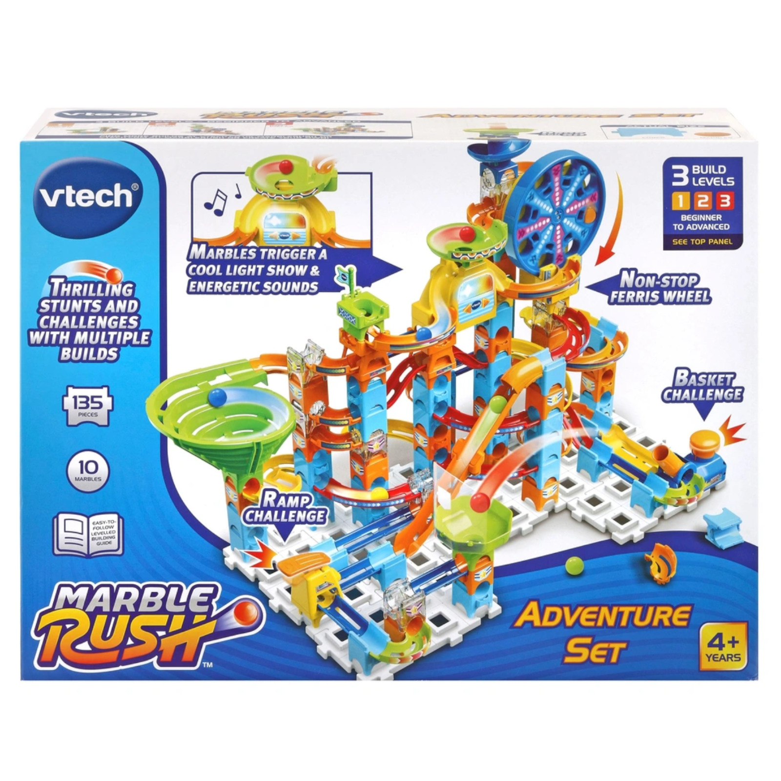 VTech Marble Rush Adventure Set, Construction Toys for Kids with 10 Marbles and 128 Building Pieces, Electronic Track Set for Boys & Girls, Colour-Coded Toy with Sound, 4 Years +, English Version