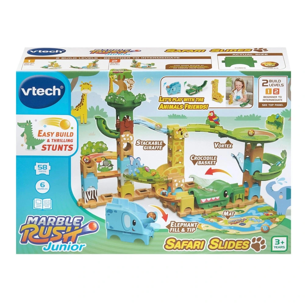VTech Marble Rush Safari Slides, Construction Set for Kids, 58 Building Pieces & 6 Marbles, Includes 3 Animal Friends, Suitable for Ages 3, 4, 5+