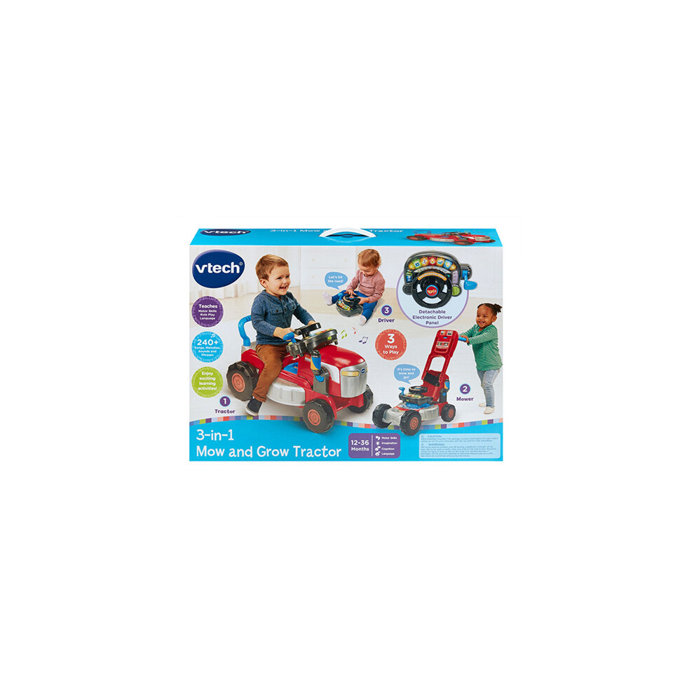 VTech 3-in-1 Mow and Grow Tractor, Ride-On Tractor, Push-Along Mower, Includes Driver Panel, Imaginative Play, Sound Effects, Interactive Play Suitable for Ages 12, 18, 24 Months, English Version