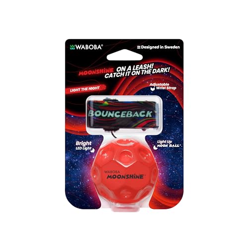 Waboba LED Bounceback Moon Ball with Wrist Strap – High-Bounce Tether Ball with Motion-Activated Lights – Improves Hand-Eye Coordination – Adjustable for Kids & Adults – Red