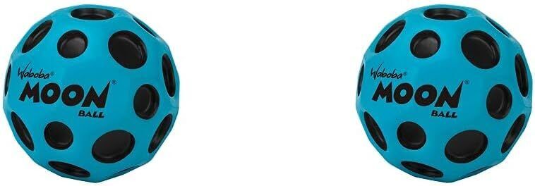 Waboba Highest Super Moon Ball-Bounces Out of This World-Original Patented Design-Craters Make Pop Sounds When It Hits The Ground-Easy to Grip, Colour-Blue, 65 mm (Pack of 2)