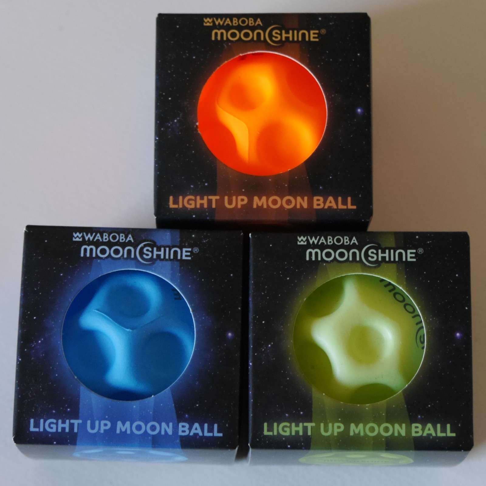 Waboba ORANGE BLUE & GREEN 3x Moon Shine Ball lights up bounces moonshine #A