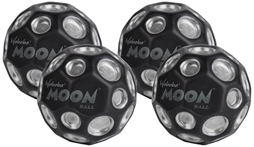 Waboba The Original Moon Ball - Hyper Bouncy Ball - All Ages Extreme Bounce and Fun - Perfect for Active Play and Outdoor Games - Black/Silver (Pack of 4)