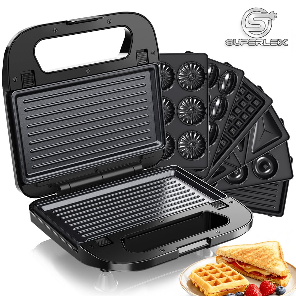 SUPERLEX 6-in-1 Waffle Maker 850W Sandwich Toaster Replaceable Plates