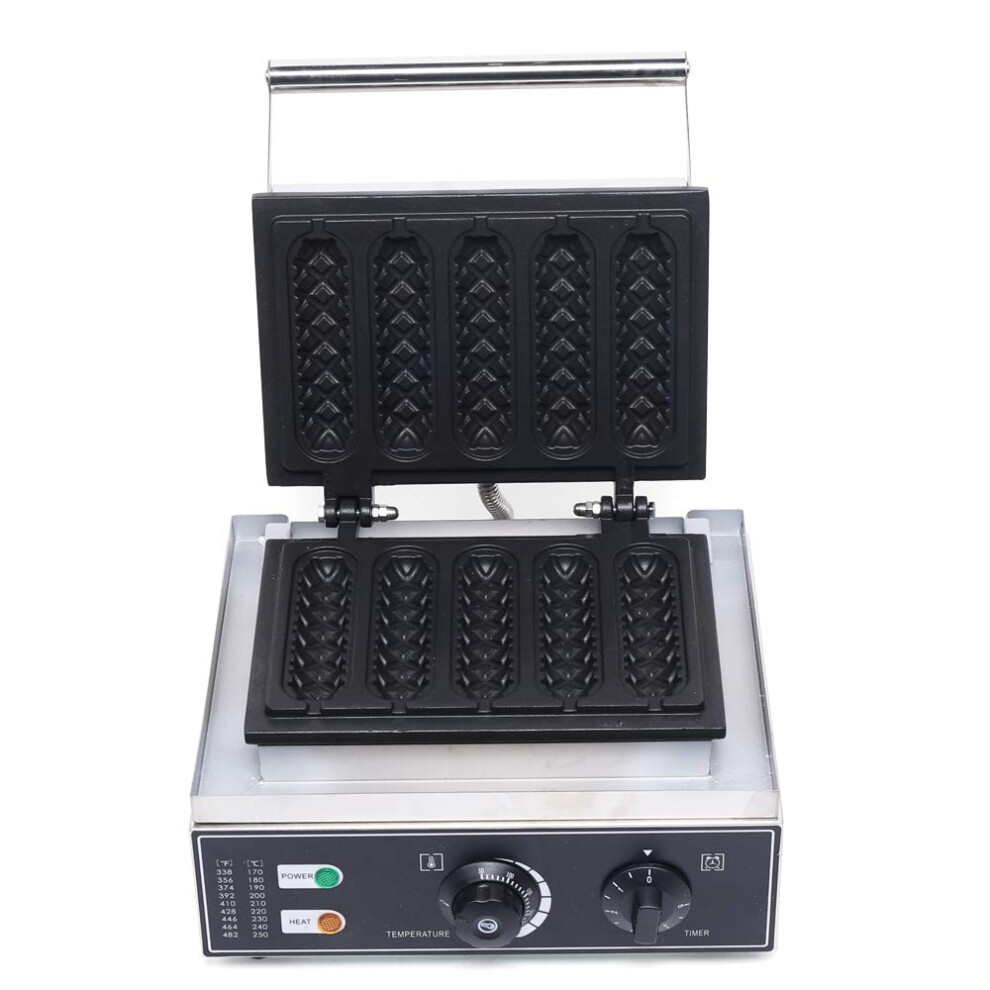 Commercial Corn Dog Waffle Maker 110V 1500W Stainless Steel NonStick 5 Molds Fast Heating