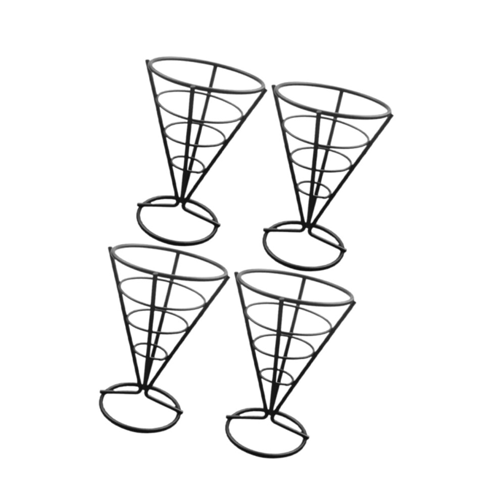 Pack of 4 Chip Basket Cone Holder Halloween French Fries Holder for French Fries Hot Dog Baskets Stand Waffle Horn Holder Black Iron