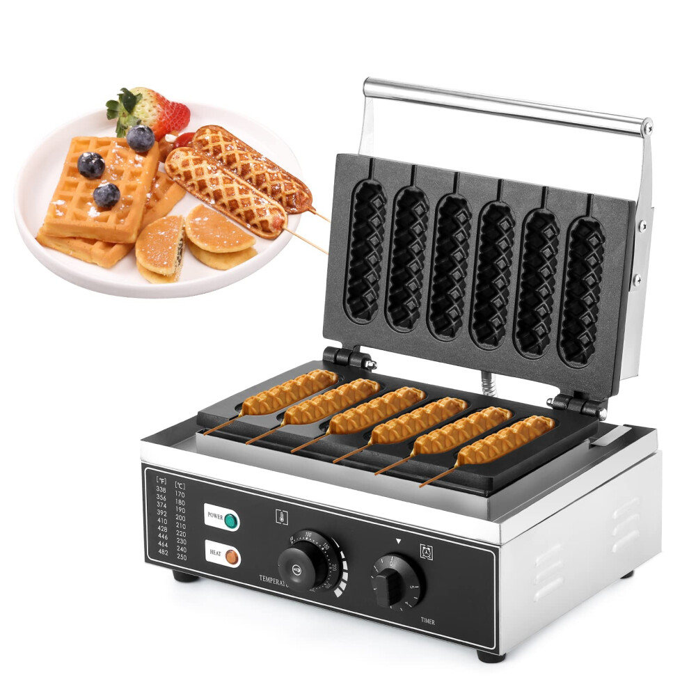 850W Hot Dog Waffle Maker 6 Corn Dogs Automatic Temp Control EU Plug