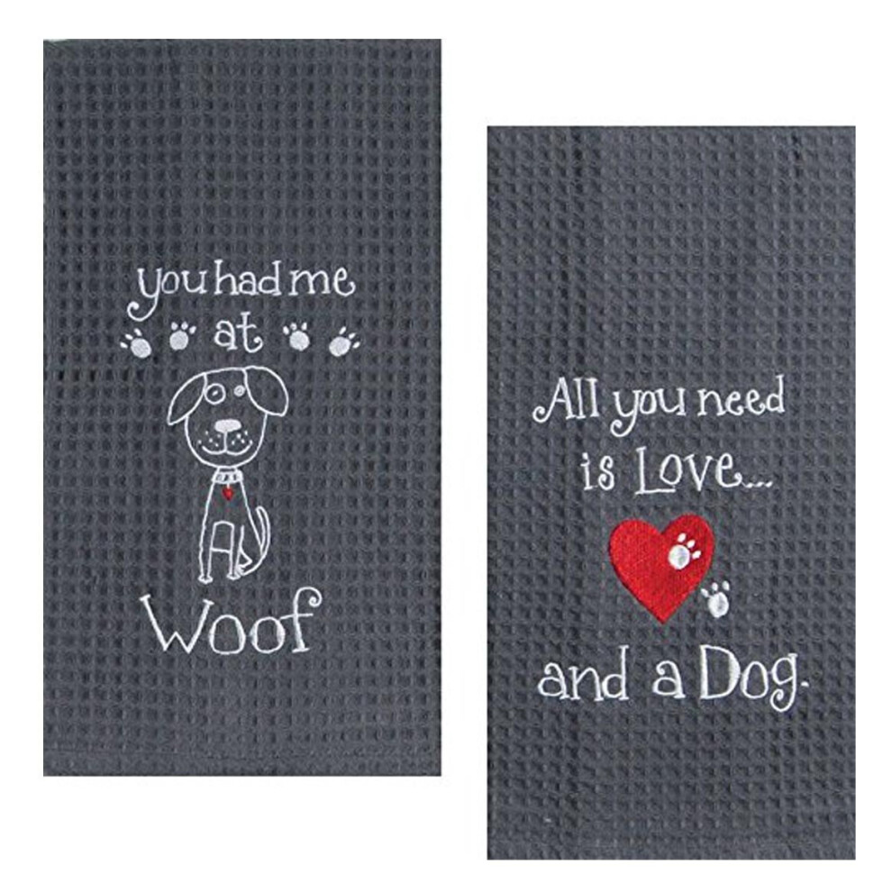 Kay Dee Dog Lover Embroidered Waffle Towel Set Cotton One Each You Had Me at Woof & Dog Love