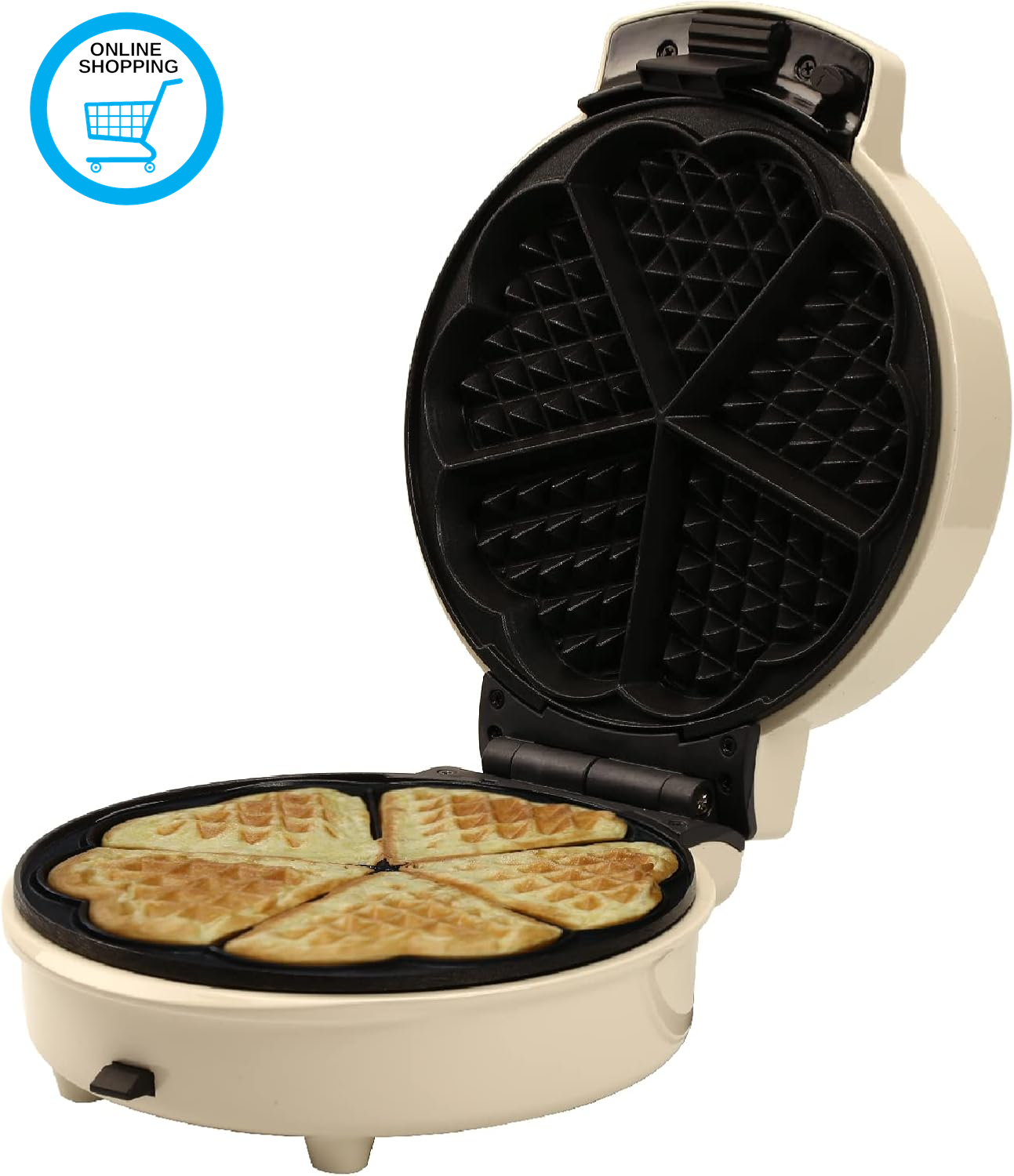 Waffle Maker Iron Heart Shape Non Stick 5 Belgian 1000W Machine Baking Geepas UK