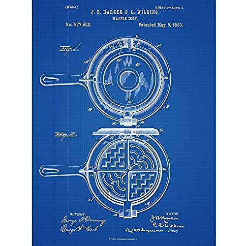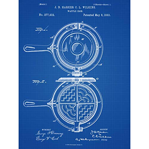 Artery8 Harker Wilkins Waffle Iron Vintage Breakfast 1883 Patent Plan Large Wall Art Poster Print Thick Paper 18X24 Inch