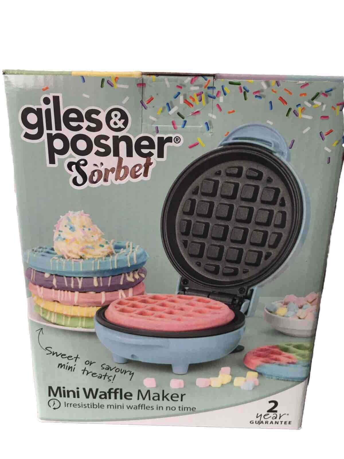 Mini Waffle Maker Machine Giles & Posner Sorbet Blue Non-Stick Plates New