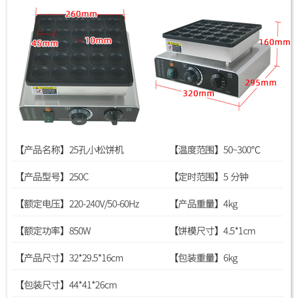 Commercial Mini Dutch Pancake Baker 25PCS Waffle Maker Machine Nonstick 800W new