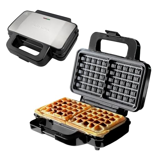 Schallen Waffler Maker | Large 2 Slice Square Non-Stick Hot Plates | Temperature Controlled Belgian Waffle Making Machine for Breakfast or Snacks | Stainless Steel | Black & Silver