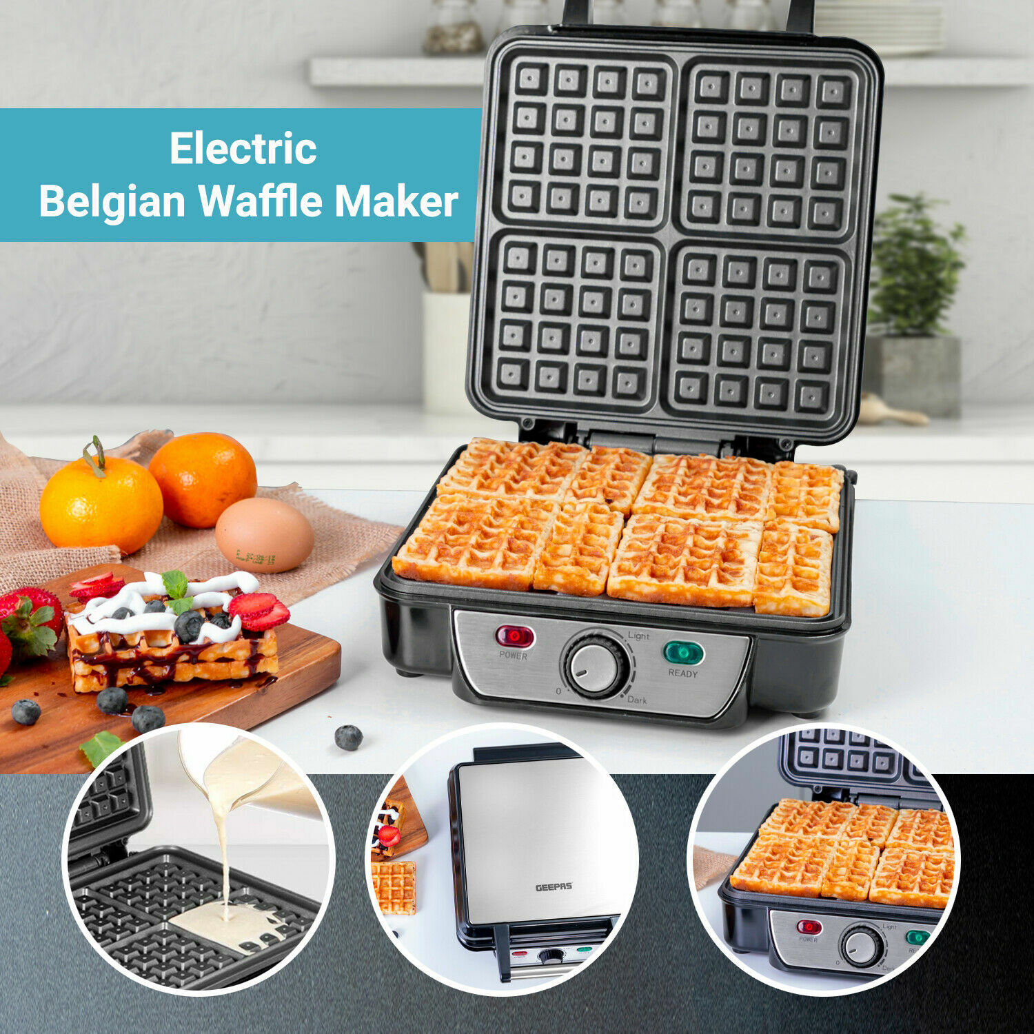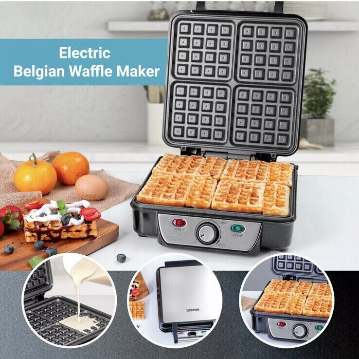 Geepas Waffle Maker 4 Slice Non-Stick Electric Belgian Waffle iron Machine 1000W