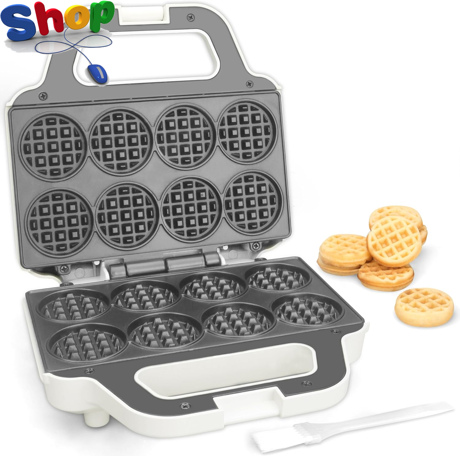 Mini Waffle Maker Machine, Tiny Waffle Bites Iron for Kids, Bake 8 X 2'' Tiny Wa