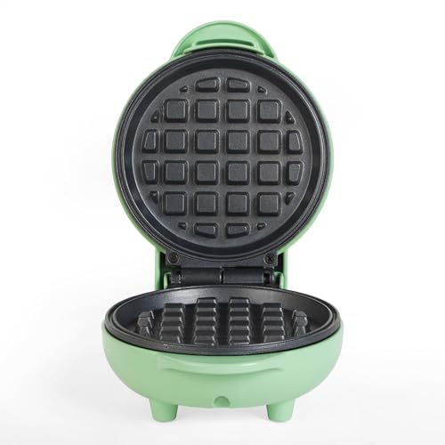 Giles & Posner EK4214GSGR Mini Waffle Maker – Non-Stick Waffle Iron Machine, For Belgian & American Style Waffles, Sweet/Savoury Snacks Desserts, Compact, 11.5 cm Round Cooking Plate, Pastel Green