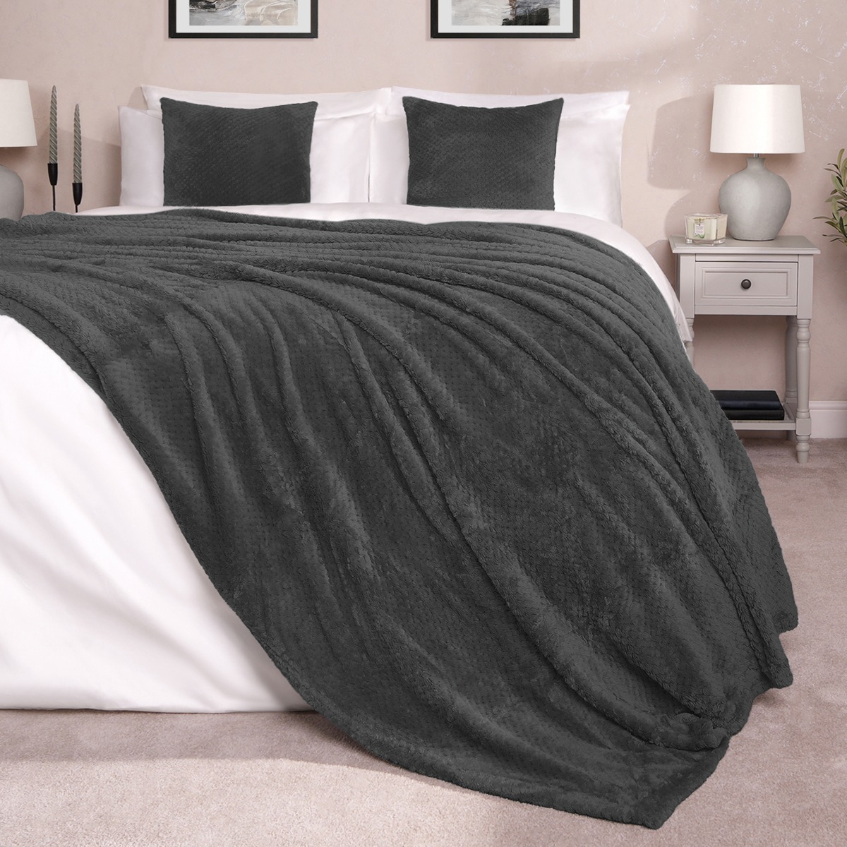 Luxury Waffle Mink Warm Throw Over Sofa Bed Soft Blanket 200 x 240cm Charcoal