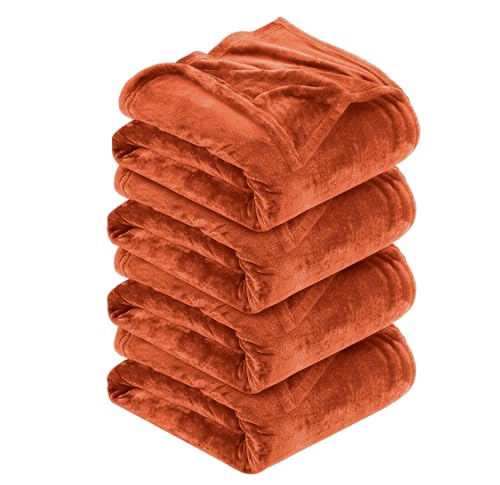 MOONLIGHT20015 Silk Touch Warm 4 Pack Fleece Blankets - 400 GSM Throws for Sofa Fluffy Blanket Bed Throw for Bedroom, Couch, Travel, Kids, Bedroom Accessories Rust, Full/Queen (200 X 240CM)