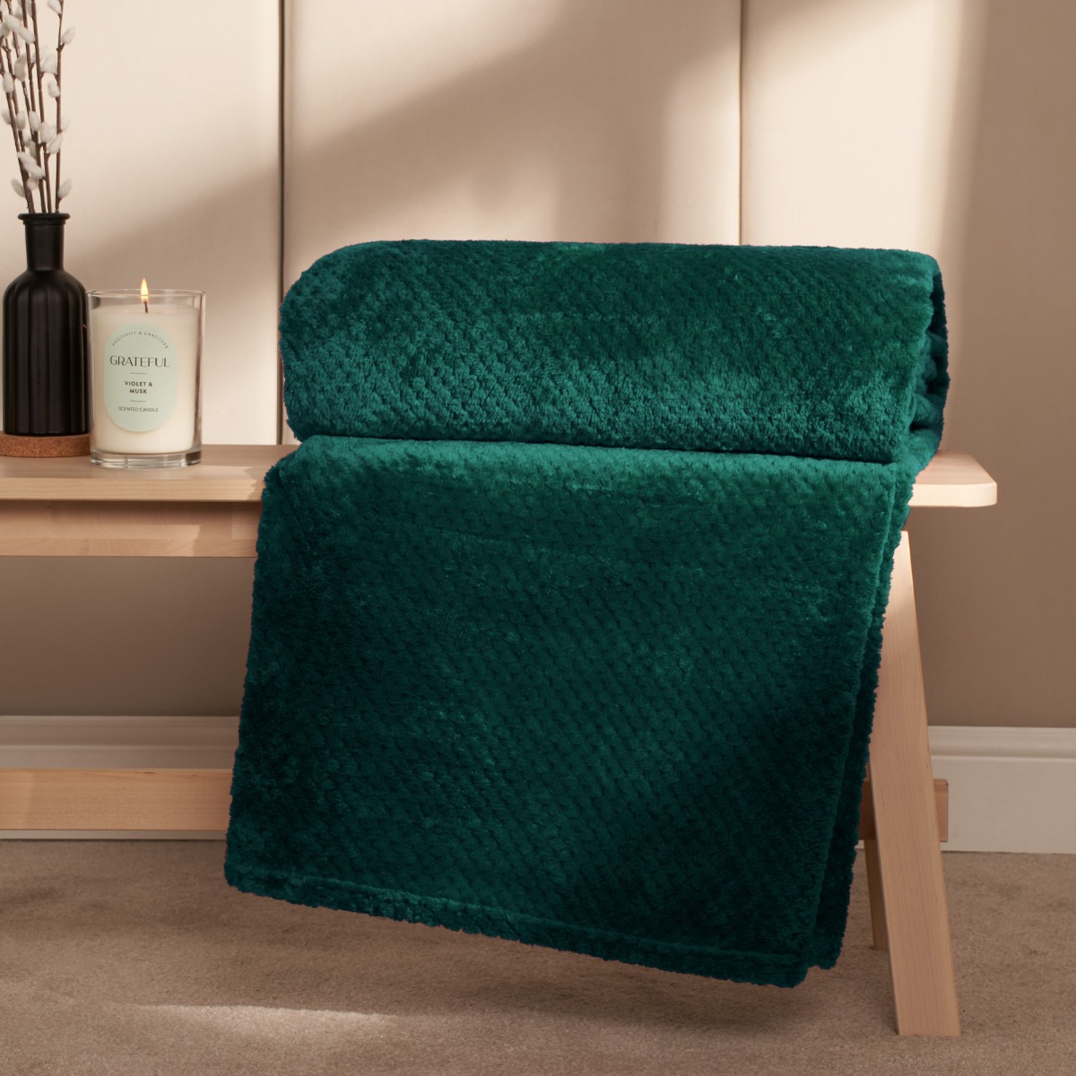 OHS Luxury Large Waffle Honeycomb Mink Warm Throw in Dark Green | Size: 200cm x 240cm