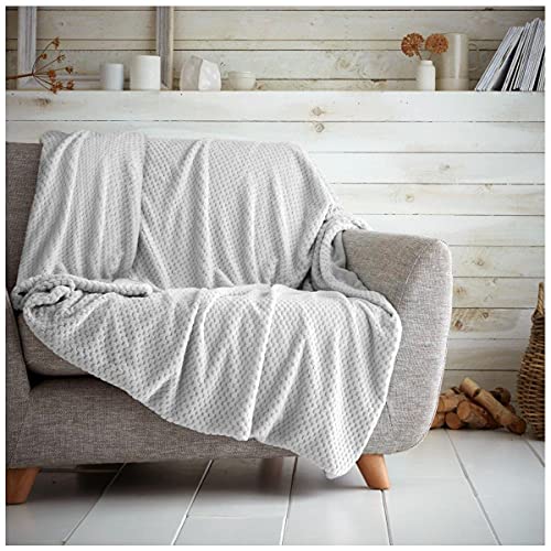 GC GAVENO CAVAILIA Luxury Popcorn Honey Comb Sofa Bed Blanket, Easy Care Super Soft & Warm Fluffy Settee Waffle Throw, Silver, 130X150, 651086