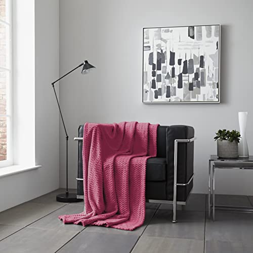 GC GAVENO CAVAILIA Gaveno Cavailia Wave Honey Comb Sofa Bed Blanket, Super Soft Fluffy Easy Care Lightweight Wavy Textured Luxury Design, Cosy Warm Settee Waffle Throw-Over [Double (150x200 Cm), Rose]