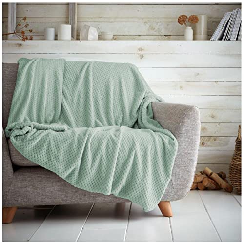 Dreamscene Throws for Beds Double, Soft Cosy Warm Blanket for Bed Sofa Settee Honeycomb Waffle Mink Throw Blanket Fluffy Fleece Throws Travel Faux Fur Throw, Duck Egg Blue - 150 x 200cm