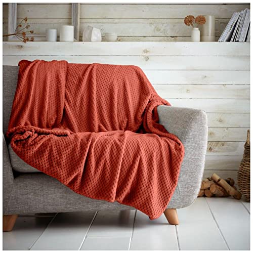 Luxury Popcorn Honey Comb Sofa Bed Blanket, Easy Care Super Soft & Warm Fluffy Settee Waffle Throw, Rust, 200X240