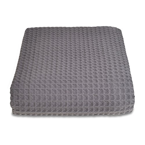 Cotton Waffle Throw Blanket, Breathable Plaid Decorative Blanket for Twin Queen King Bed & Sofa Summer(Dark Grey)
