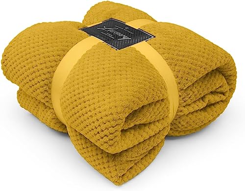 GC GAVENO CAVAILIA Waffle Popcorn Single Throw - Honeycomb Textured Blanket for Sofa and Bed | Lightweight, Fluffy, Easy Care Bedspread | Cosy, Warm Decorative Throw for All Season, Ochre, 130x150 cm