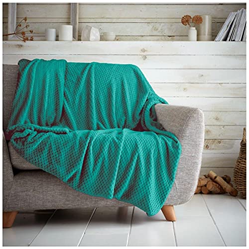 GC GAVENO CAVAILIA Popcorn Honey Comb Sofa Bed Blanket, Easy Care Super Soft & Warm Fluffy Settee Teal, 200X240 Popcorn Throw Waffle Teal