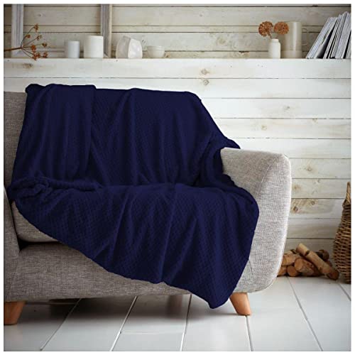 GC GAVENO CAVAILIA Luxury Popcorn Honey Comb Sofa Bed Blanket, Easy Care Super Soft & Warm Fluffy Settee Waffle Throw, Navy, 200X240, Waffle Navy, 651376