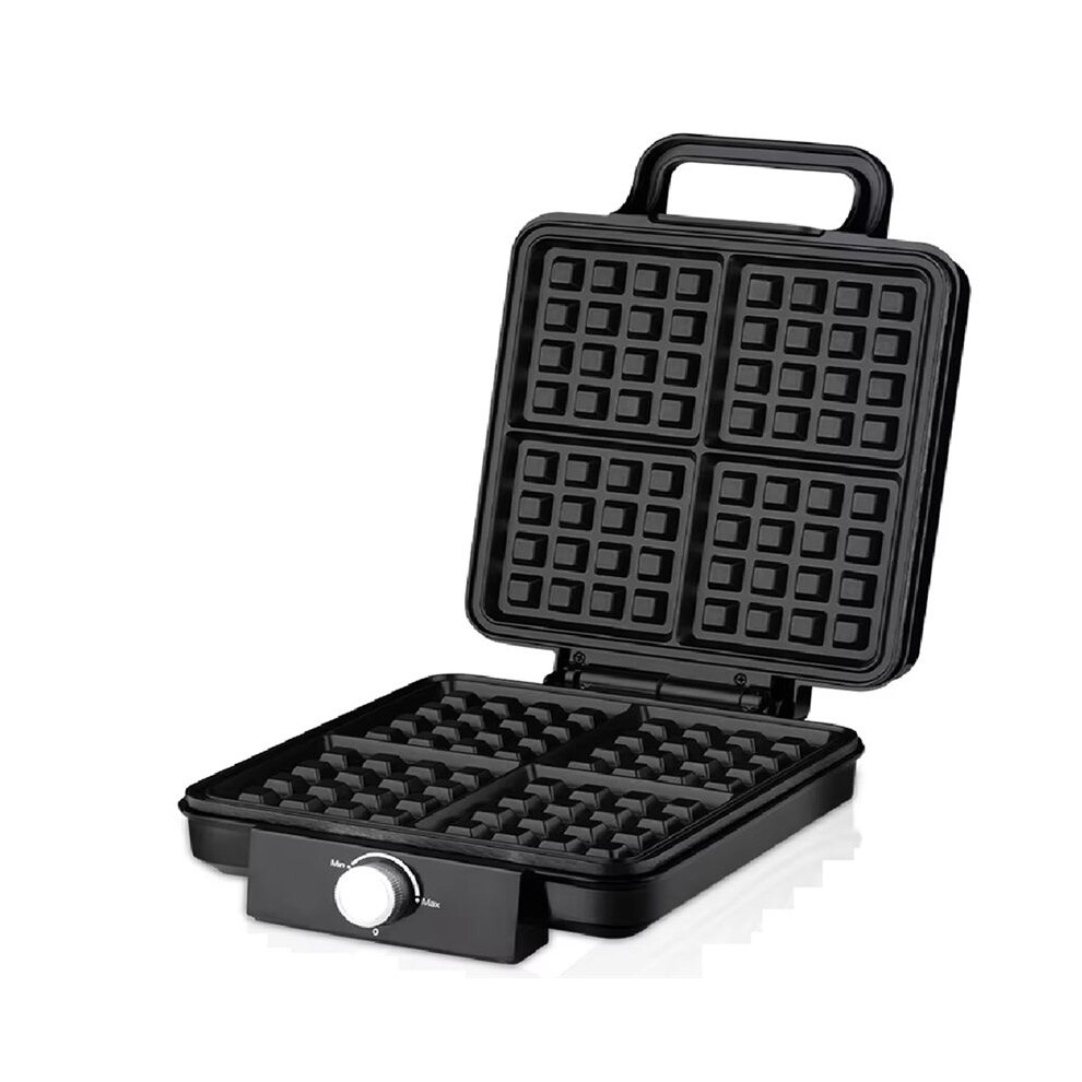 Black Electric 760W Waffle Maker Iron Machine - Deep Cooking Non Stick Plates - Adjustable Temperature Control