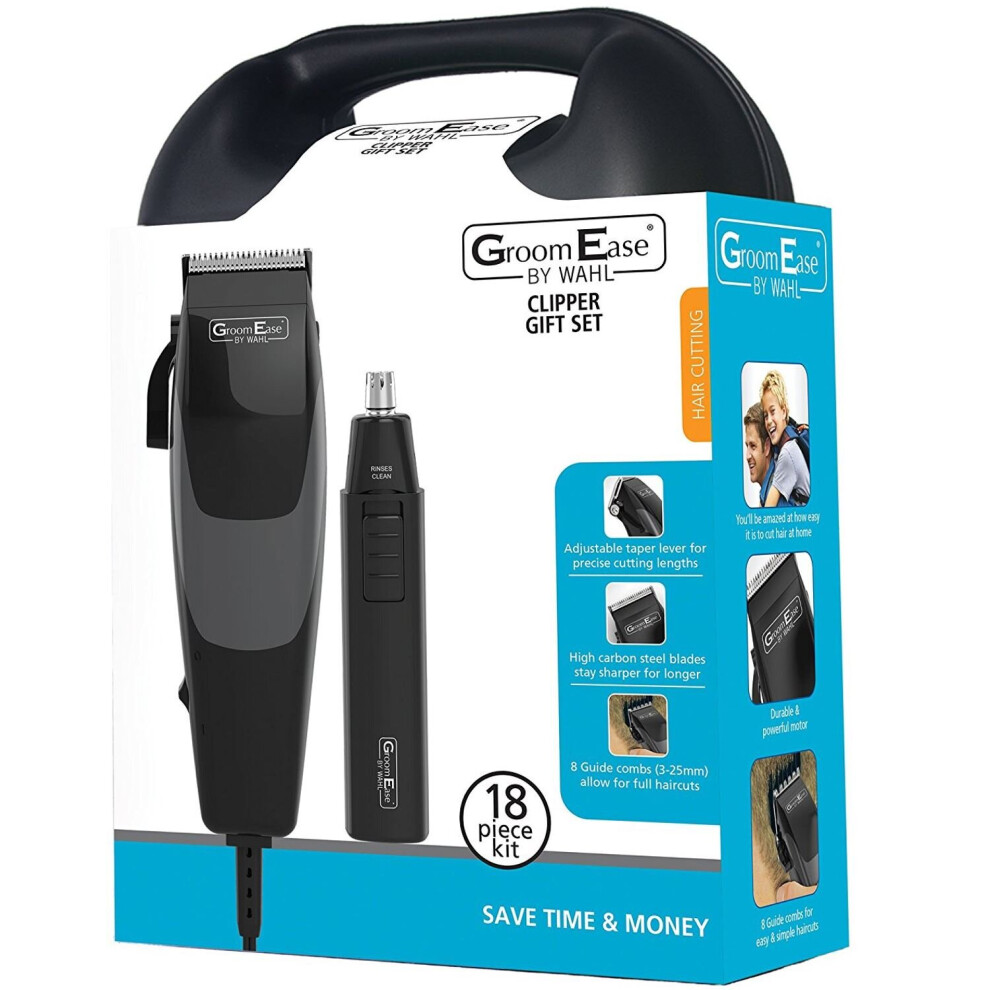 Wahl 79449-317 GroomEase Mens Carbon Steel Hair Clipper & Nose Trimmer Gift Set