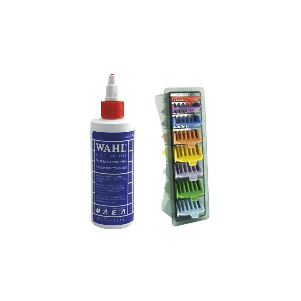 Wahl Clipper Oil 4oz and Wahl 1-8 Coloured Clipper Comb Set