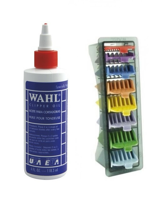Wahl Clipper Oil 4oz and Wahl 1-8 Coloured Clipper Comb Set