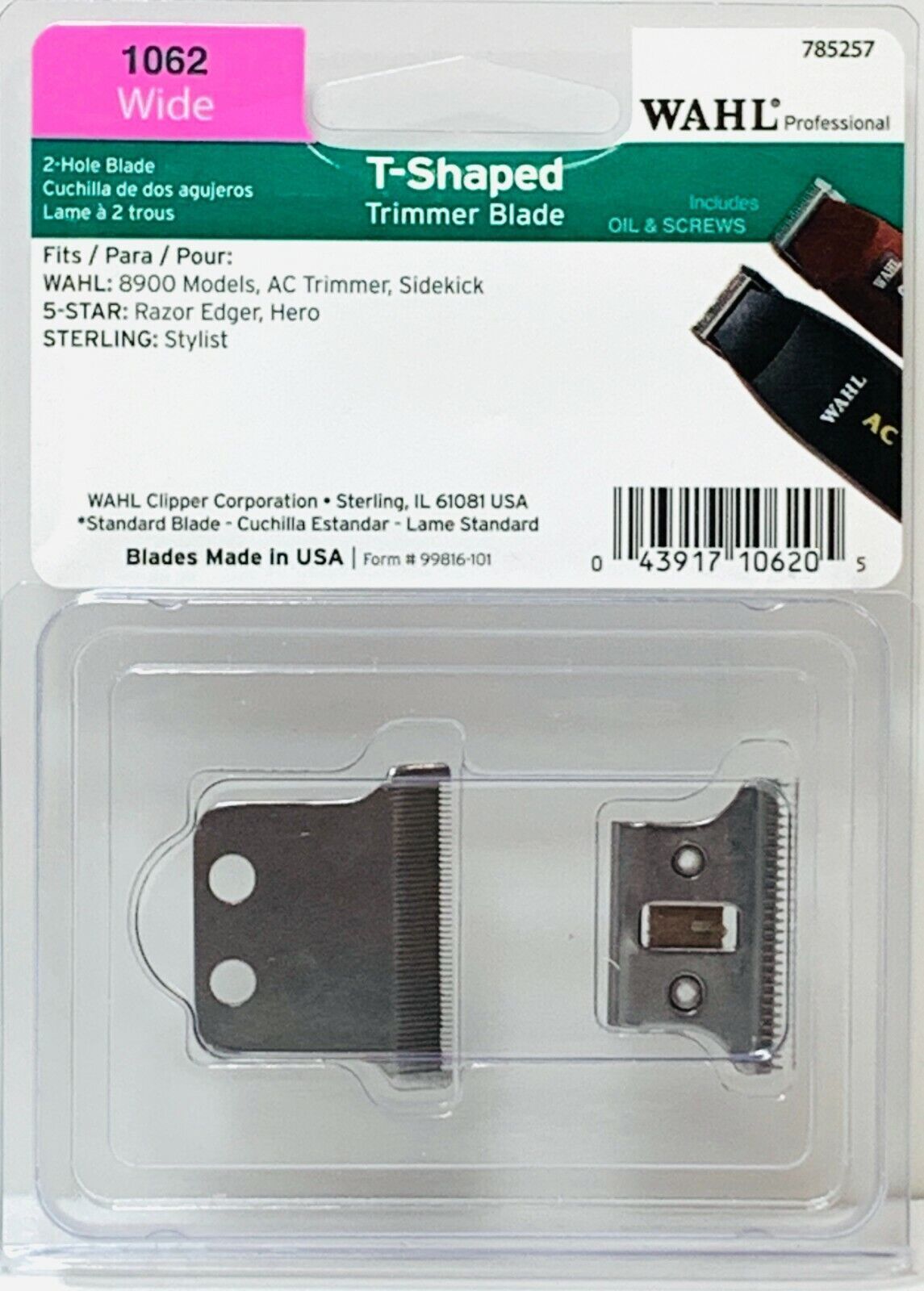 WAHL T-SHAPED TRIMMER BLADE SET DETAILER, HERO, 8900 MODELS AND SIDEKICK