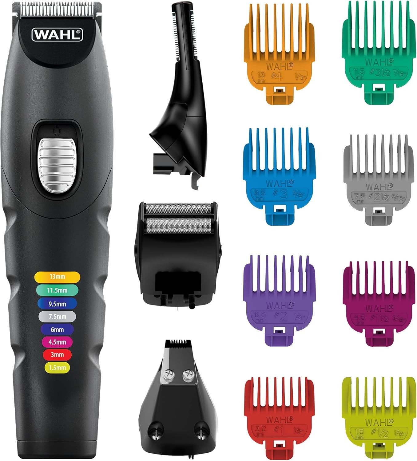 Wahl Colour Trim Multigroomer Kit, Includes Ear & Nose Trimmer, Body Grooming, Beard Trimming, 8 Colour-Coded Length Combs, Travel